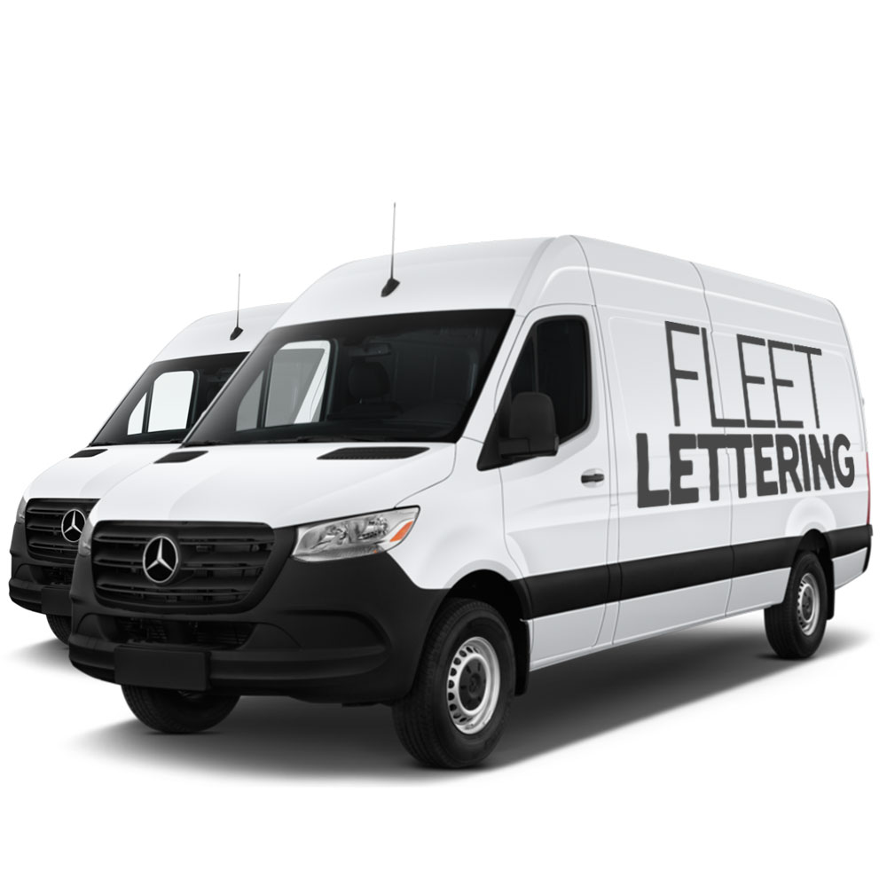 The most basic fleet graphics are vinyl lettering for vehicles. This option consists of your message being cut from solid colored vinyl. Messaging is primarily text but simple vector graphics will also work. Lettering can be done in more than 30 colors but can not contain printed photos or gradients. Fleet lettering is pre-masked and applied all at once. Typical uses include company name, contact information, and simple logos.